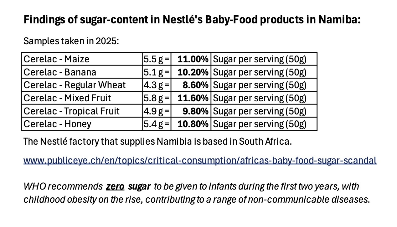 Deeply troubling Double-Standards on Sugar in Baby Foods harm children in developing countries incl. Namibia, affecting our public health and socio-economic development.