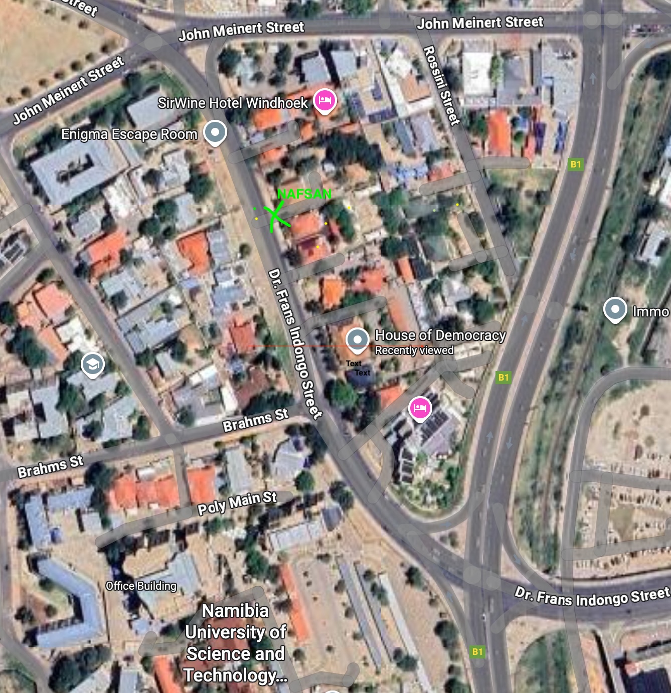 We are now housed on the old premises of one of our members, the Namibia Nature Foundation, in Windhoek West, 78 Dr. Frans Indongo Street – near the House of Democracy, between John Meinert and Brahms Street.
